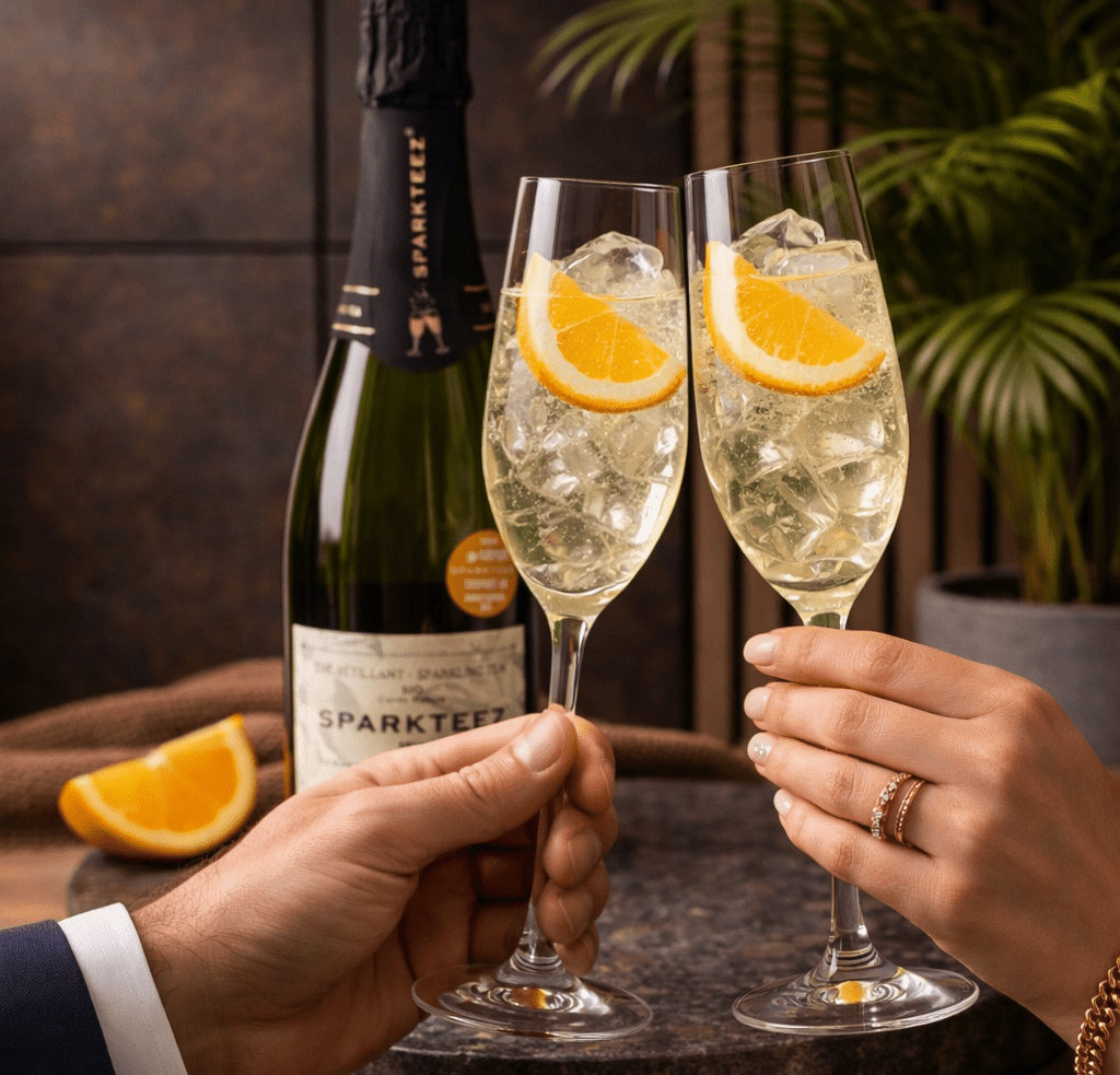 Sparkteez to musująca herbata stworzona z myślą o tych, którzy cenią subtelną elegancję i naturalną świeżość. Delikatne bąbelki podkreślają charakter herbaty, nadając jej lekkości i wyjątkowego wyrafinowania. To propozycja idealna dla osób poszukujących bezalkoholowego napoju o wysokiej jakości, który zachwyca zarówno smakiem, jak i sposobem podania. Serwowana dobrze schłodzona prezentuje się niezwykle stylowo, a jej ekologiczne pochodzenie podkreśla dbałość o najwyższy standard produktu. Sparkteez została wyróżniona prestiżową nagrodą Gold Award Organic Innovation (Natexpo 2022), co potwierdza jej unikalny charakter i innowacyjne podejście do świata herbat.