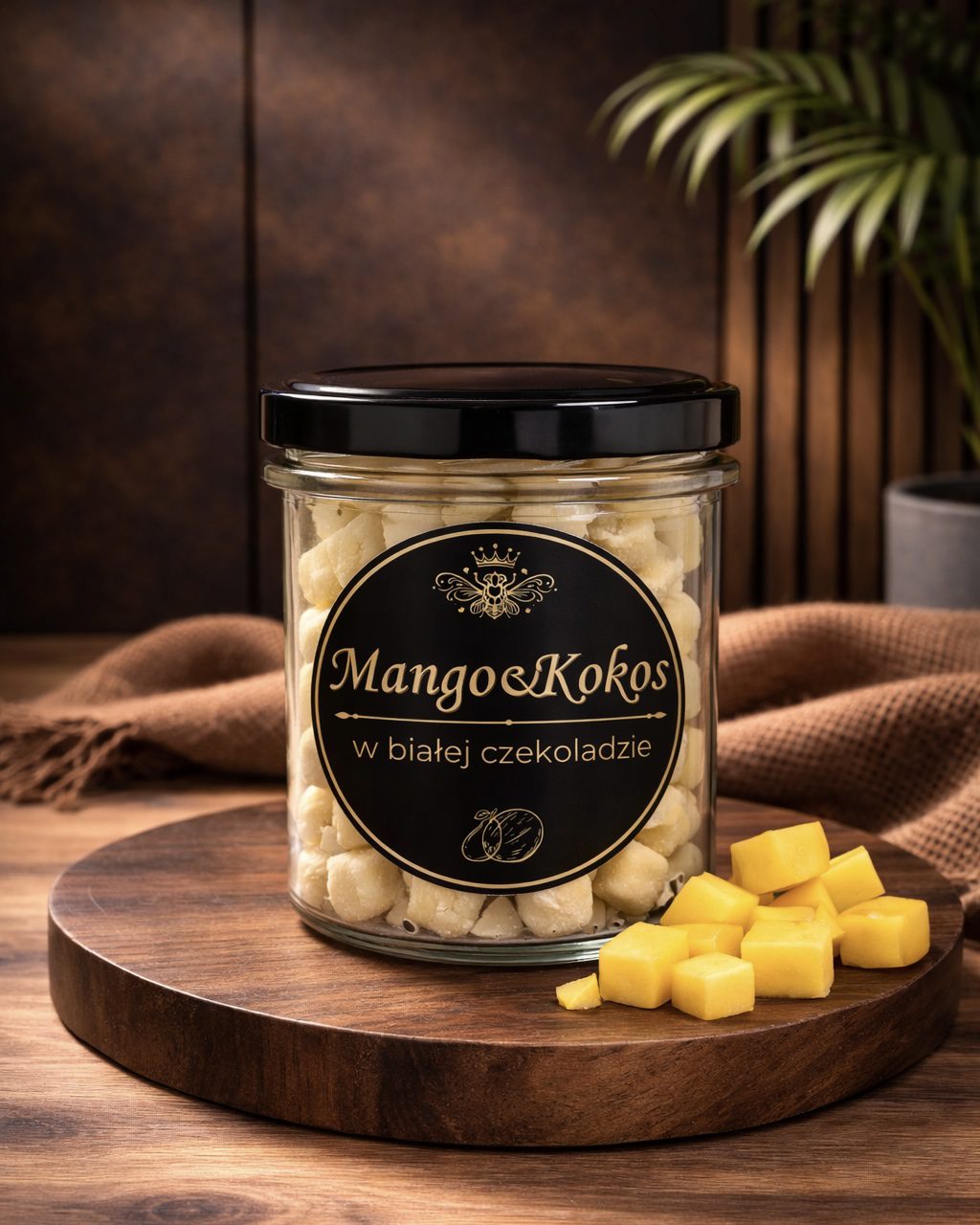 • Praliny „Mango&Kokos” (180 g) – Delikatne praliny, w których kremowe mango spotyka się z aksamitnym kokosem, tworząc harmonijną, egzotyczną słodycz. Ich miękka, deserowa konsystencja i tropikalny charakter sprawiają, że każda sztuka smakuje jak mała, słodka podróż do ciepłych krajów. Idealne dla miłośników owocowych i lekkich pralinek.